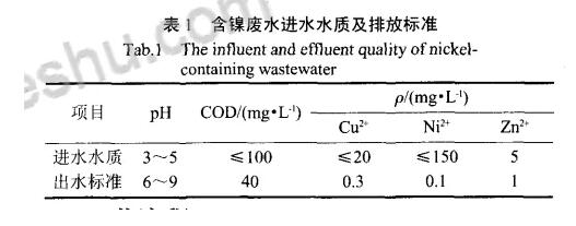 各企業生產的廢水統一排放收集到廢水處理設備廠,按照不同的處理方法進行分股分類,其中含鎳廢水的水質情況及出水標準如下圖所示。